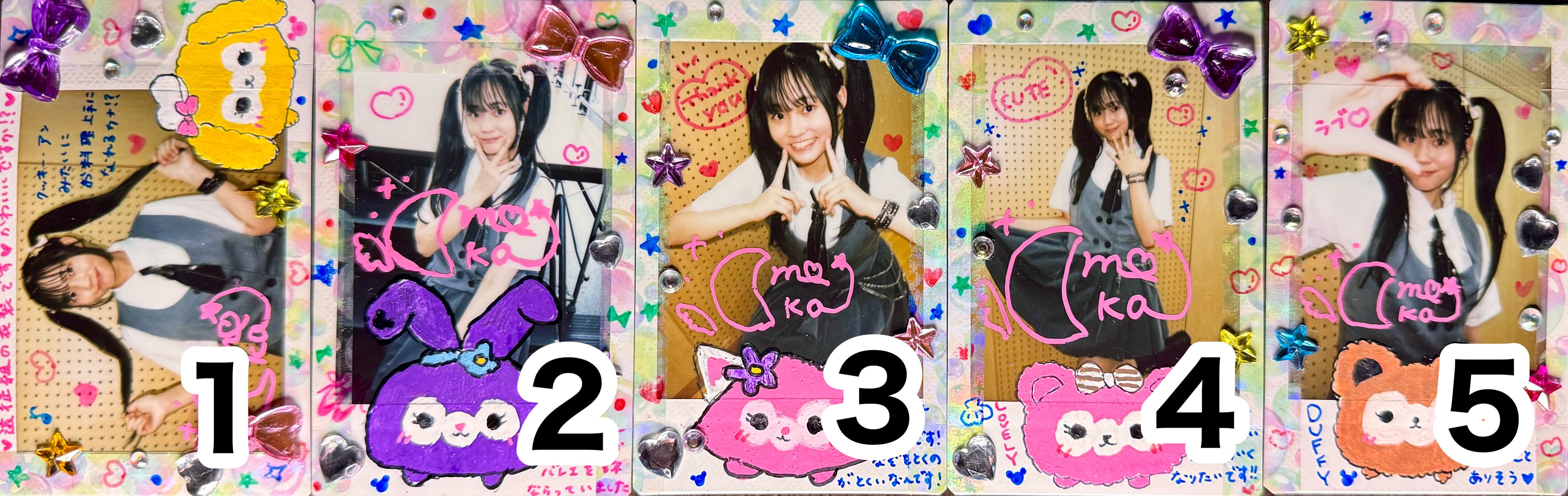 もか手作り選べるデコチェキです。 今回は「おでかけ♪アミーガス」の1番目の衣装バージョンです 画像からお気に入りの番号をお選びになってください 世界に一つしかない一点ものですのでお早めにお買い物求めください!